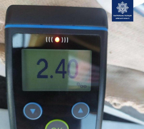 Інспектори помітили явні ознаки алкогольного сп’яніння у керманича. Громадянин погодився пройти огляд на стан сп'яніння, результат - 2,4 проміле, що перевищує дозволений рівень майже у 12 разів.