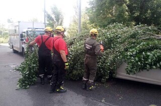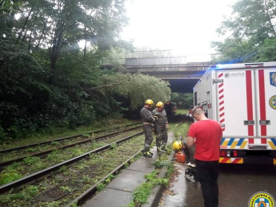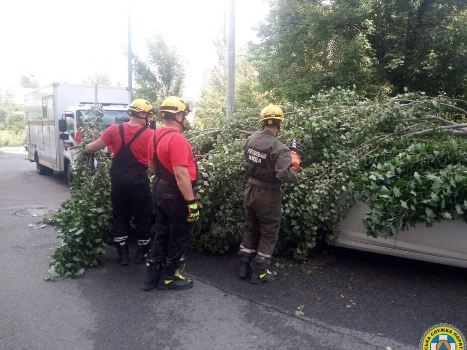 «Оперативні підрозділи виїжджають на виклики від Поліції Києва та від самих мешканців. Наразі вже звільнили від повалених дерев трамвайні колії в Пущі-Водиці, авто – у Голосіївському, проїжджу частину проспекту в Оболонському», – йдеться у повідомленні.