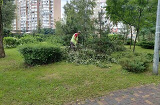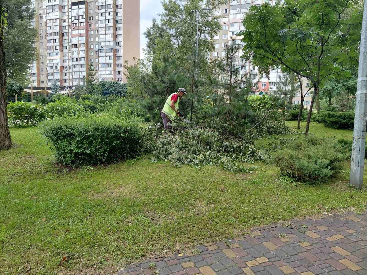 За інформацією «Київзеленбуду», працівники районних підприємств з утримання зелених насаджень укріплюють дерева, розкрижують, прибирають території та вивозять залишки деревини й гілля. До робіт залучили 21 одиницю техніки комунального об’єднання.