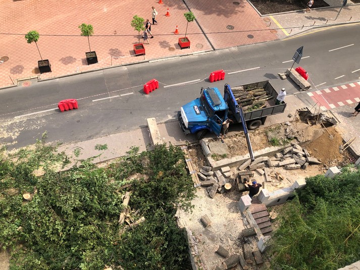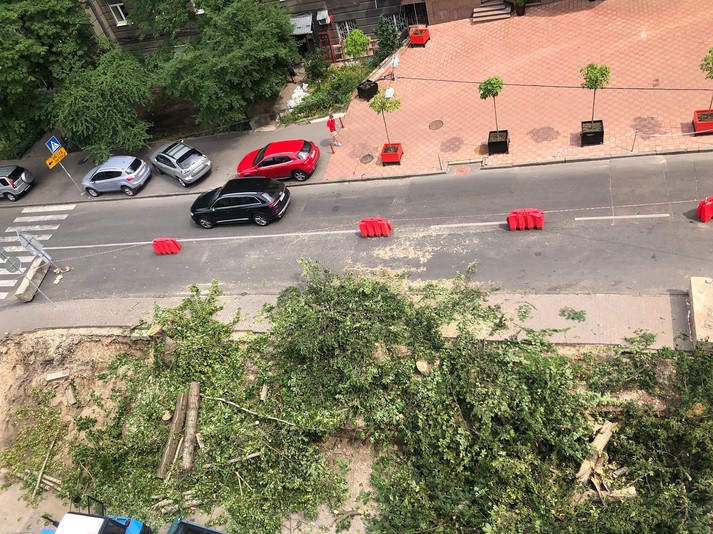 Під час дорожнього ремонту в центрі Києва зрізали дерева (фото)
