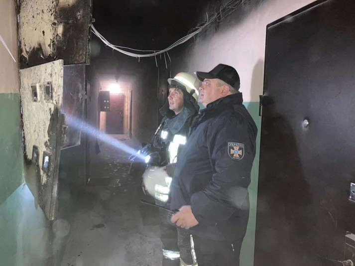 Через сильне задимлення з поверху, де сталося займання та верхніх поверхів на безпечну відстань вивели 10 дорослих та 2 дітей.
