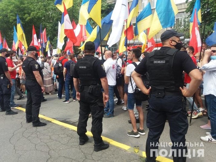 «Близько 12-ї години агресивно налаштовані молодики кинули кілька димових шашок у бік колони, яка рухалася на вулицю Академіка Богомольця, та застосували сльозогінний газ. Поліцейські миттєво відреагували та затримали кількох осіб», - йдеться в повідомленні.
