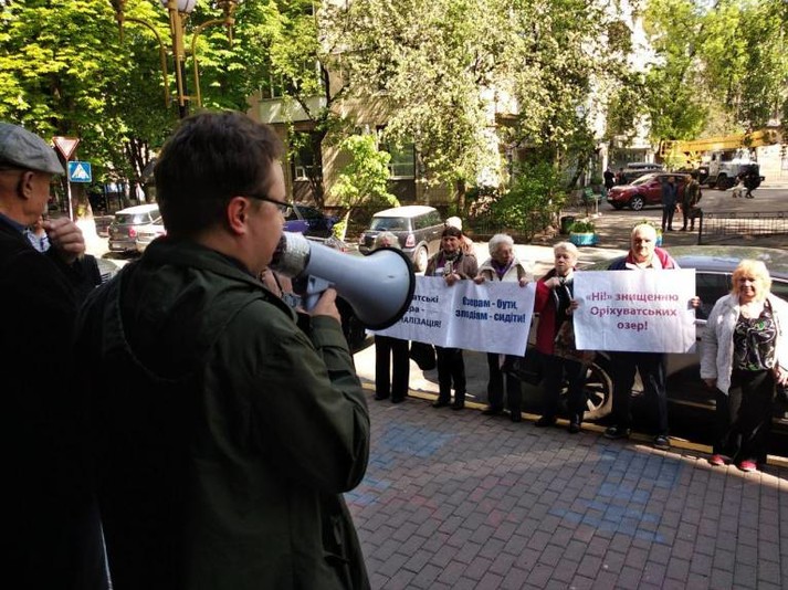 Сьогодні, 10 травня, під стінами Генеральної прокуратури України в Києві відбулась акція жителів Голосіївського району, які вимагали від ГПУ розслідувати кримінальне провадження за фактом привласнення та розтрати бюджетних коштів, виділених на розчищення Оріхуватських озер.