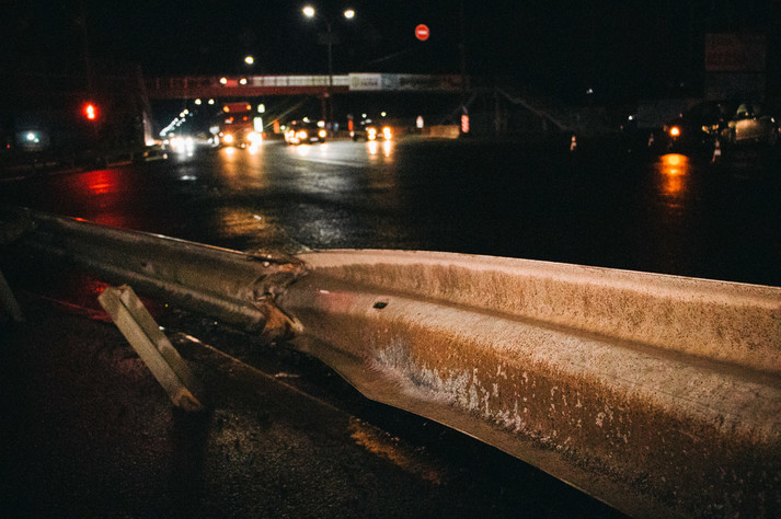 На жаль, уникнути зіткнення не вдалося. Від удару Audi врізався у відбійник, проїхав вздовж нього і вилетів на зелену зону.