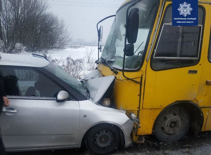 Під Києвом автівка протаранила лоб у лоб маршрутку (фото)