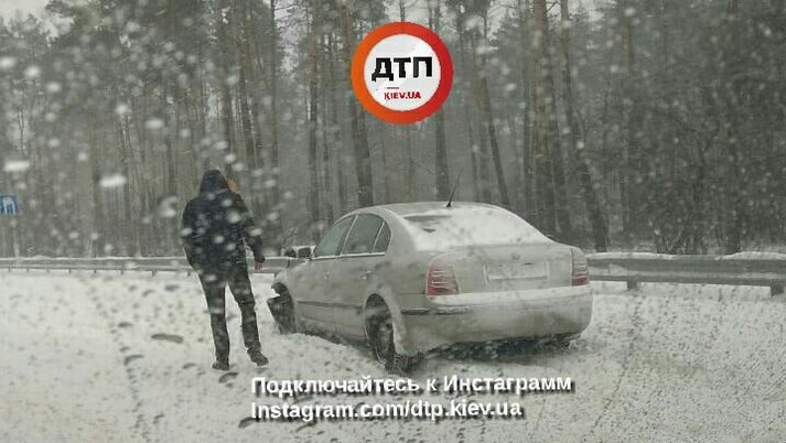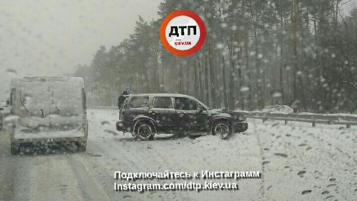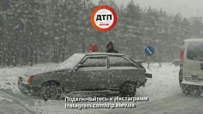 Під Києвом на засніженій дорозі зіткнулися три автівки