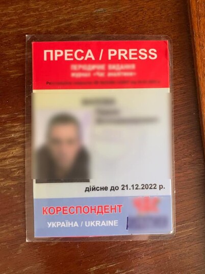 Під час обшуку у нападника також було виявлено журналістське посвідчення.