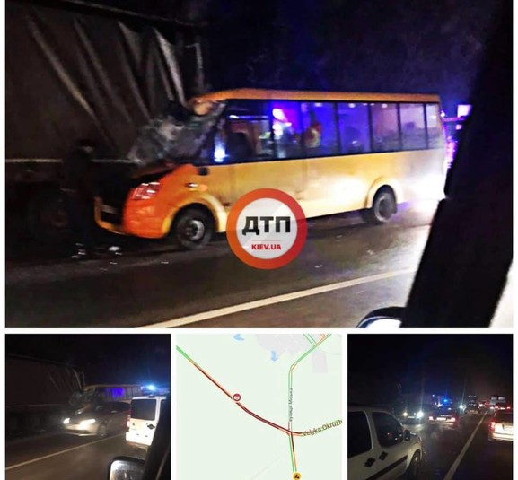 Сьогодні, 11 грудня, на Варшавській трасі під Києвом сталася ДТП за участі маршрутки і фури.