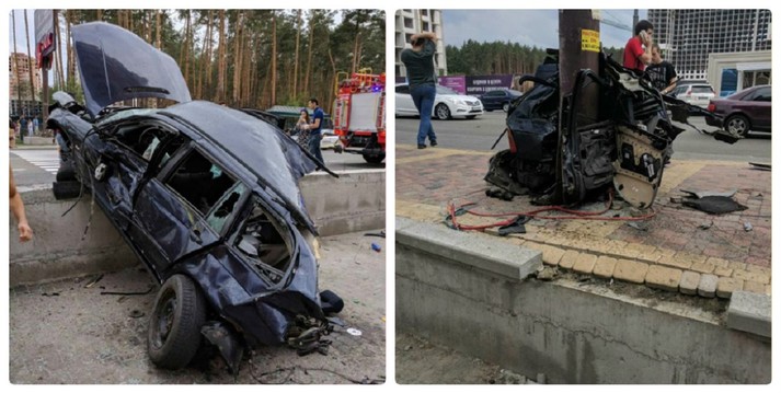 За попередньою інформацією, автомобіль BMW не впорався з керуванням, врізався в зупинку, потім зніс білборд, в якому залишив задню частину авто, після чого «вилетів» на стоянку фітнес-клубу, вдарив Smart, зачепив Ford, Mondeo і зупинився за мікроавтобусом.