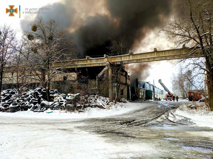 Під Києвом масштабна пожежа: горить склад із шинами (фото)