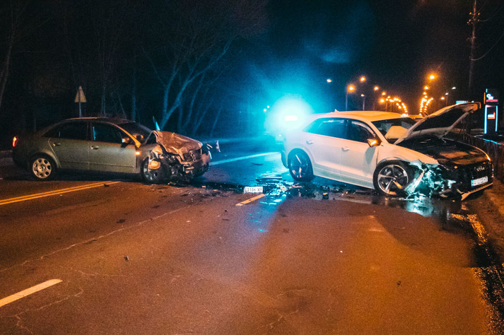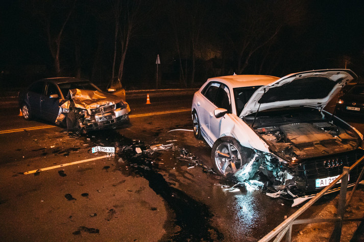 У ніч на понеділок, 10 лютого, в місті Бровари, що під Києвом, сталася ДТП: дорогу не поділили дві Audi. Один з автомобілів виїхав на зустрічну смугу, чим спровокував лобове зіткнення.