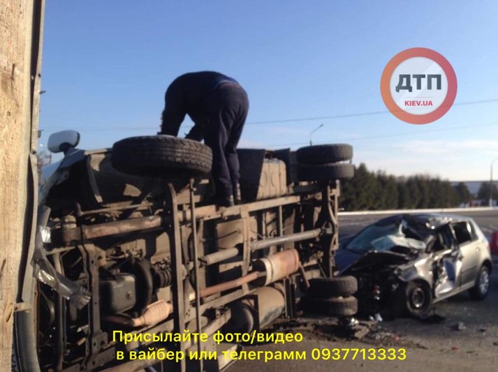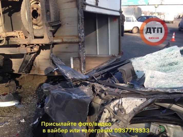 «На виїзді з Києва навпроти Південного кладовища трапилася страшна аварія, в якій постраждала вантажна машина і легковик», - повідомляє dtp.kiev.ua.