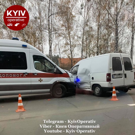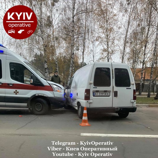 У п’ятницю, 27 листопада, у Гостомелі під Києвом сталася дорожньо-транспортна пригода за участю автомобіля Fiat та військової швидкої допомоги.