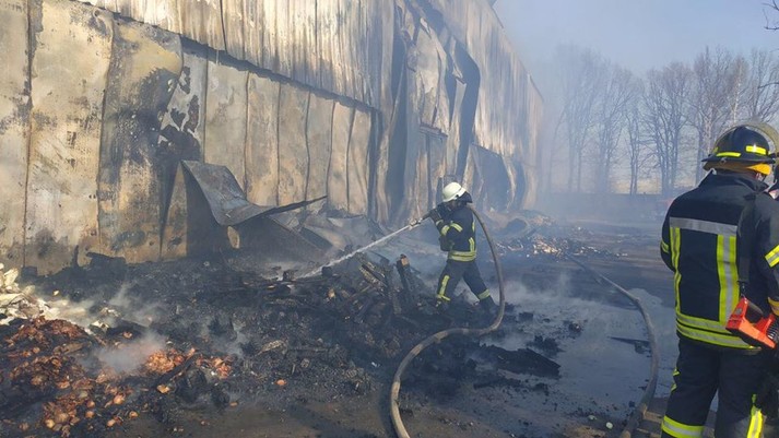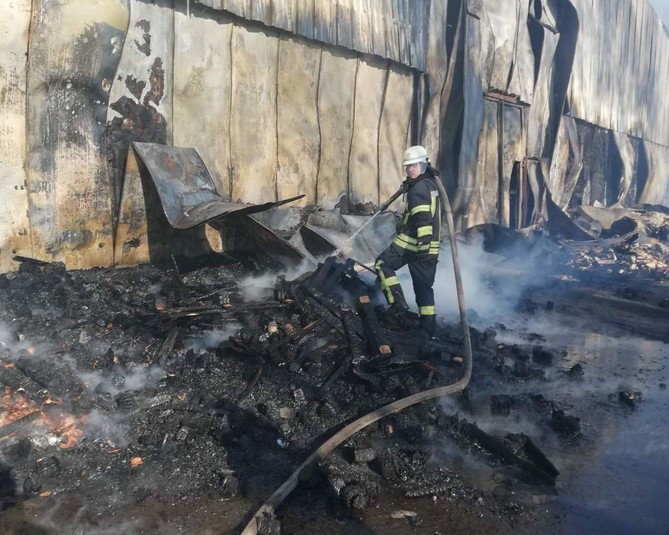 О 17:00 було локалізовано загорання складської будівлі на площі 700 кв. м та трав’яного настилу площею 1000 кв. м, о 18:32 пожежу повністю ліквідовано.