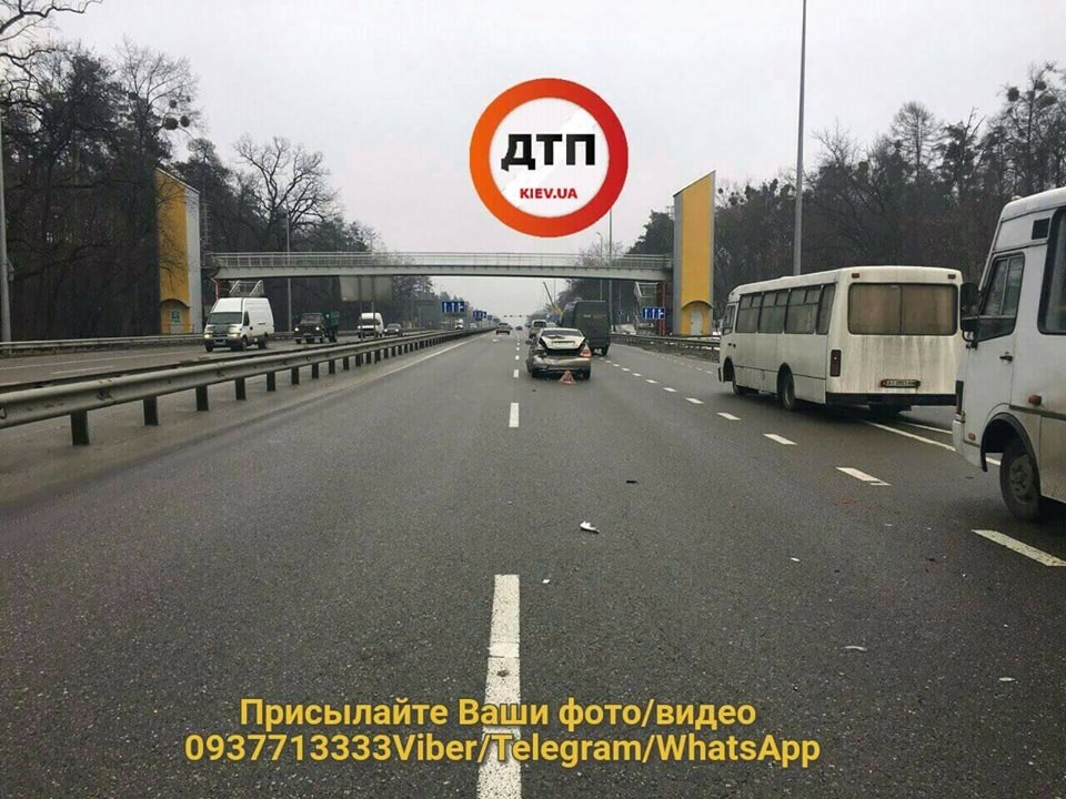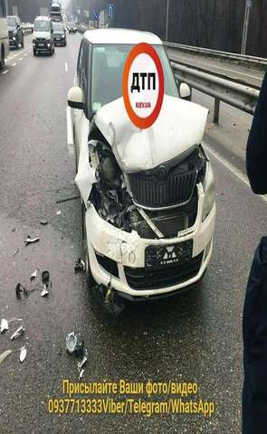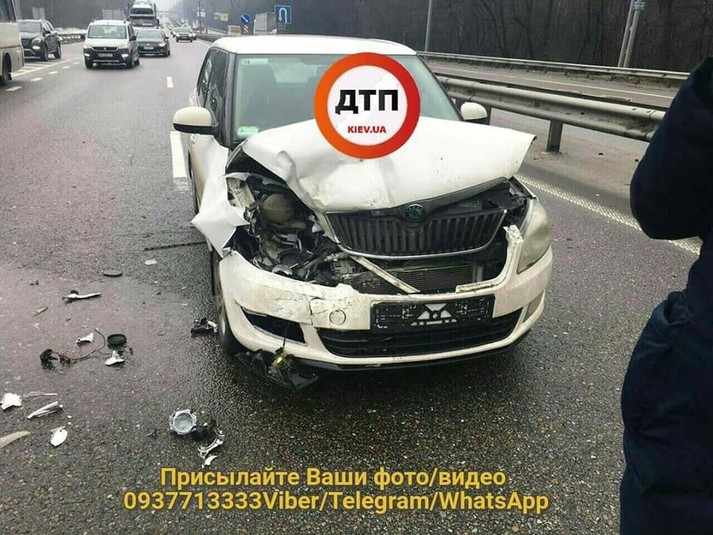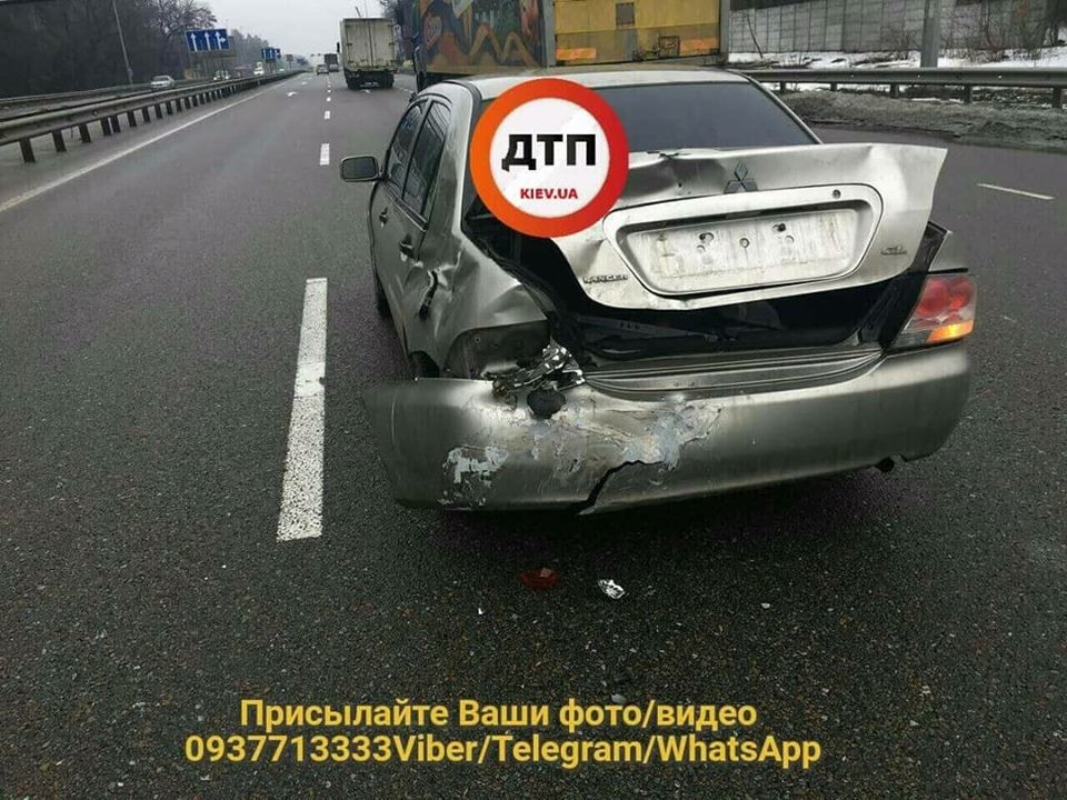 На Житомирській трасі поблизу Києва сталася серйозна ДТП. Зіткнулися два автомобілі - Mitsubishi і Skoda.
