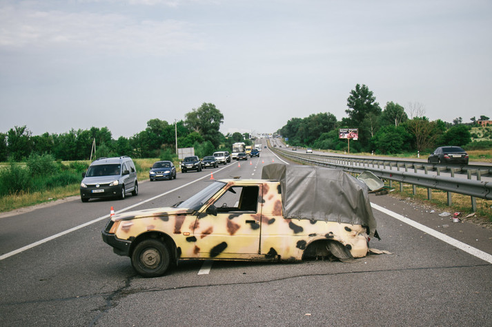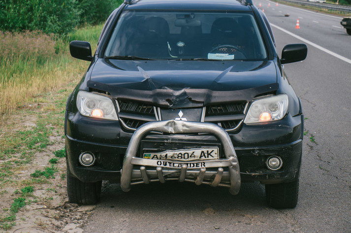 ДТП сталася в 40 кілометрах від Києва, обидва автомобілі прямували в бік Житомира. Як повідомляє Інформатор, прямо на дорозі у «Таврії» лопнуло колесо, після чого машину почало крутити, потім відірвалася вся задня вісь. Mitsubishi, що їхав позаду, не встиг загальмувати і в'їхав в неї.