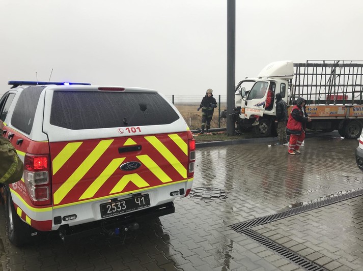 По прибуттю рятувальники встановили, що відбулося зіткнення вантажного автомобіля з опорою блискавкозахисного пристрою, в результаті чого ноги водія затиснуло у кабіні.