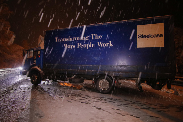 Під Києвом вантажівка врізалася у відбійник і перекрила трасу (фото, відео)