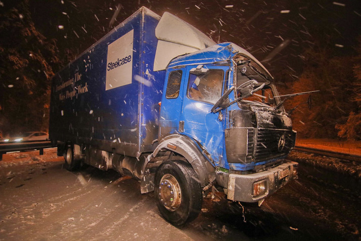 У понеділок, 24 грудня, під Києвом на Житомирській трасі сталася ДТП з постраждалими: вантажівка Mercedes врізався у відбійник.