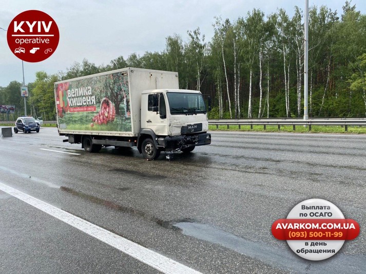 У вівторок, 19 травня, на Бориспільській трасі, у бік Борисполя, неподалік від с. Щасливе сталася дорожньо-транспортна пригода: вантажний автомобіль MAN в’їхав у задню частину Lada.