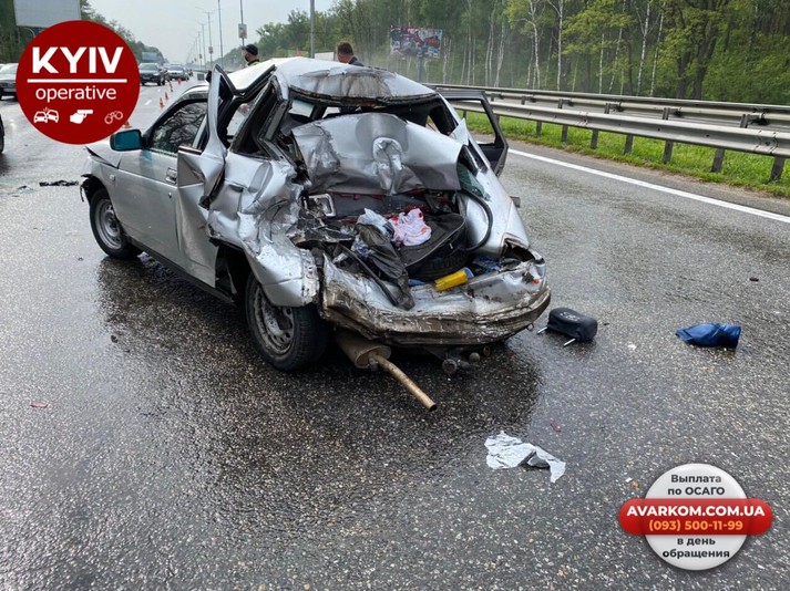 Під Києвом вантажівка зім’яла легковик (фото, відео)