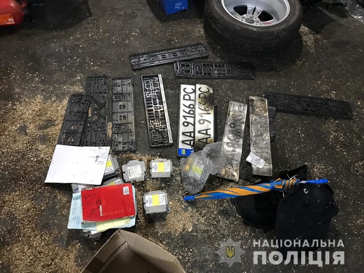 Під час проведення обшуків поліцейські виявили та вилучили понад 15 порізаних кузовів від автомобілів марки Hyundai зі знищеними ідентифікаційними номерами, спецтехніку для прошивки ключів до замків запалення від автомобілів марок Hyundai та Кіа; GPS-трекери для відслідковування маршрутів руху автомобілів, інші особисті речі потерпілих, номерні знаки від автомобілів, які використовувались, як номери «для прикриття» під час перегону викрадених авто.