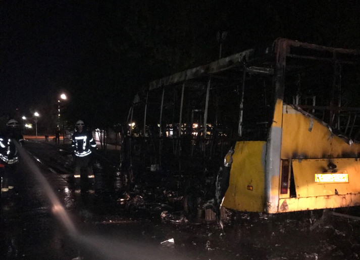 12 серпня о 02:37 до оперативно–диспетчерської служби Києво-Святошинського району надійшло повідомлення про загорання автобуса в м. Вишневе на вулиці Остапа Вишні.