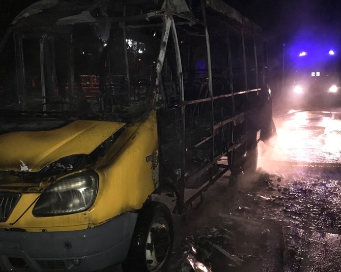 По прибуттю на місце виклику розвідкою було встановлено, що загорання виникло в маршрутному таксі, що знаходилось на узбіччі дороги.