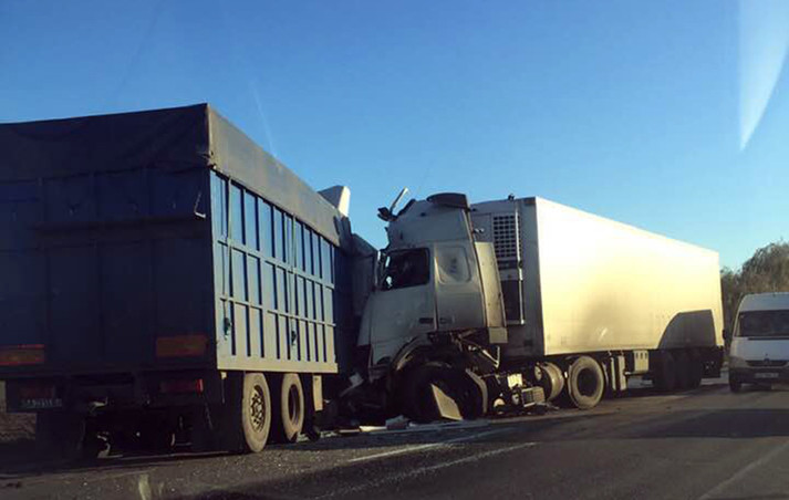Дві фуру зіткнулися лоб в лоб. За попередніми даними, у дорожньо-транспортній пригоді постраждав один із водіїв. Дані про постраждалих уточнюються.