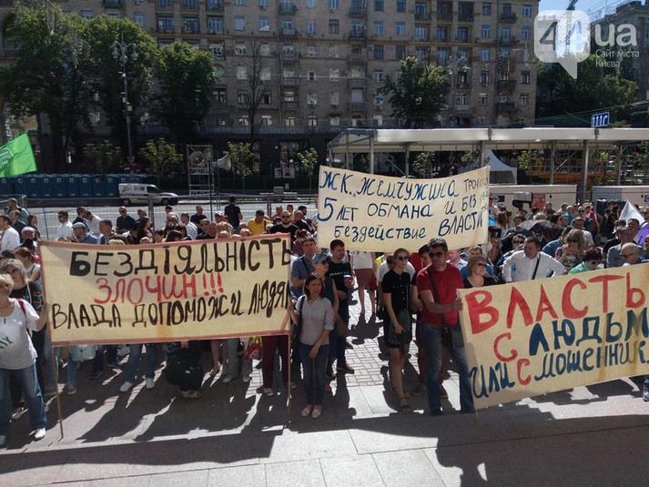 Серед мітингувальників також було помічено групу людей, яка представилася як ошукані інвестори Еліта-Центру.