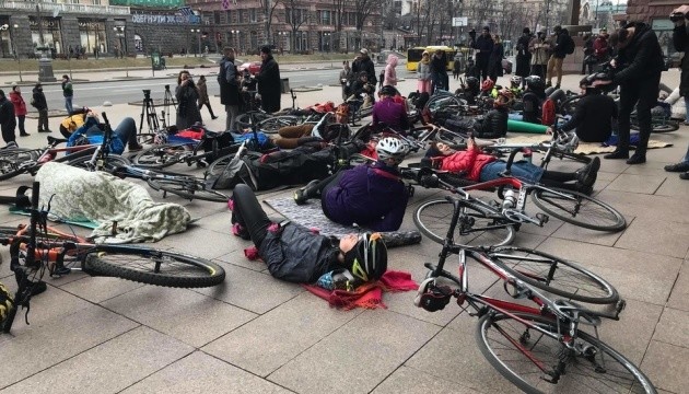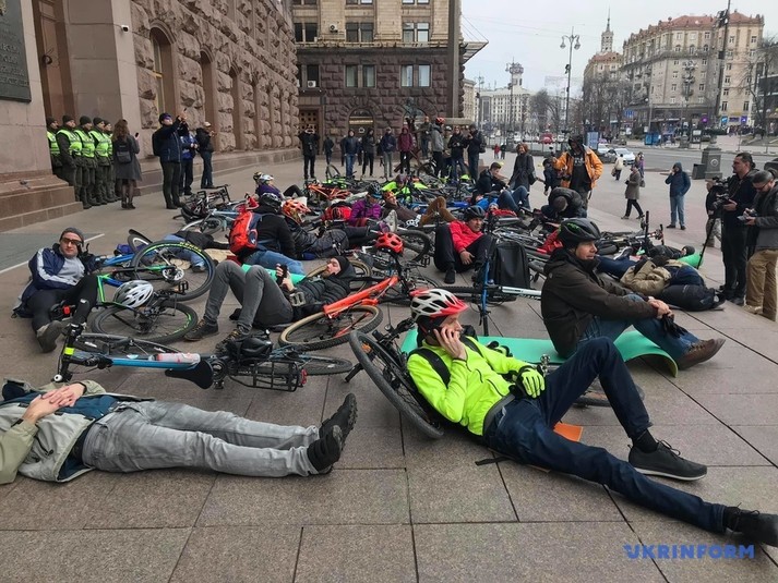 Під мерією Києва велосипедисти влаштували лежачий протест (фото, відео)