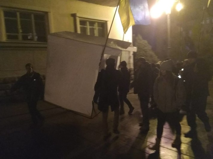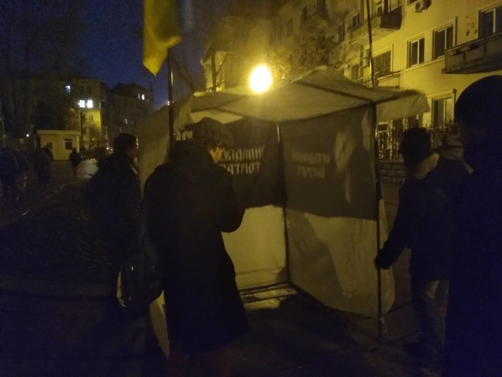Під Офісом президента активісти встановили агітаційний намет і недобудовану сцену (фото)