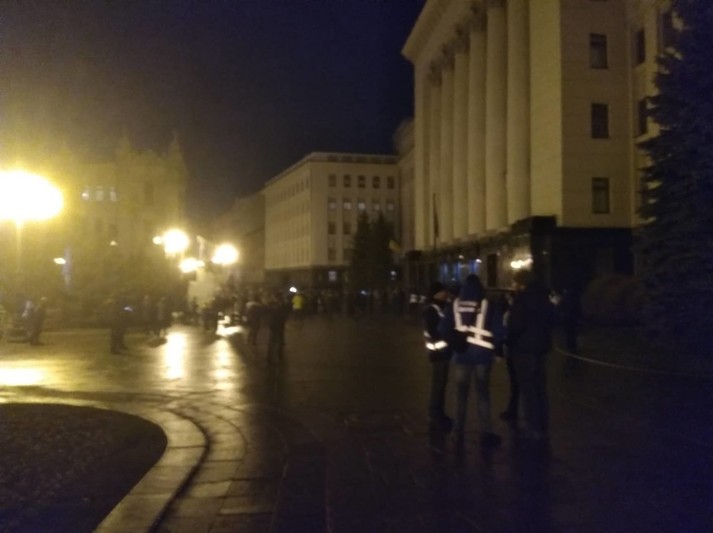 За повідомленням кореспондента, активісти встановили під Офіс президента агітаційний намет. Входи в будівлю охороняє поліція, а також працює поліція діалогу.