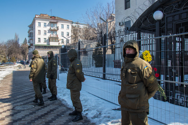 У понеділок, 26 березня, під стінами посольства Росії у Києві зібралися люди. Вони влаштували перформанс-акцію, присвячену проблемі насильницького зникнення татар і українців на території окупованого Криму.