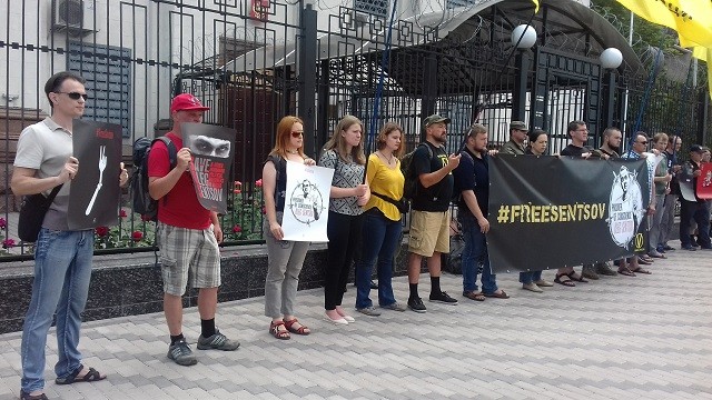 Активісти скандували: «Сенцову - свободу!» та «Слава Україні!». Вони наголошували, що Сенцов - не жертва, а борець.