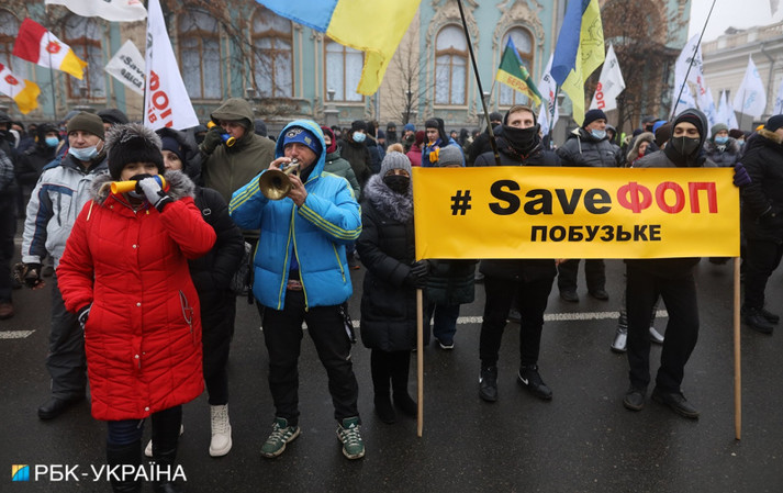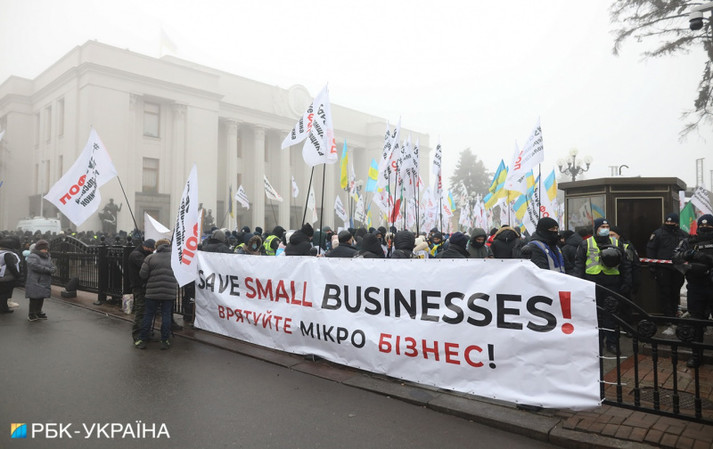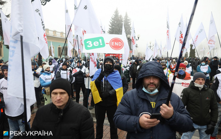 Мітингувальники вимагають ухвалення законопроєкту про спрощену систему оподаткування малого і середнього бізнесу.