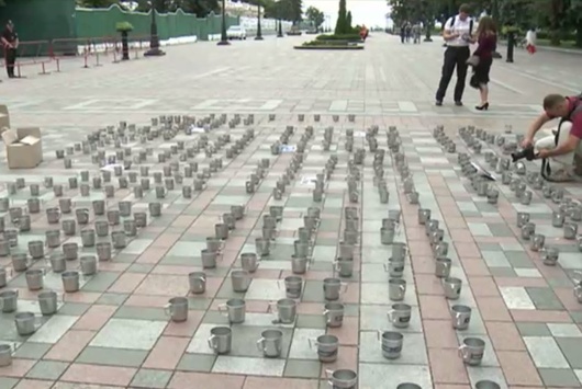 «Вже почалася акція. Активісти під стінами ВР принесли 450 тюремних кружок. Вони кажуть, що акція проходить символічно. Таким чином вони хочуть закликати народних депутатів проголосувати за зняття недоторканності, затримання і арешт народного депутата від групи «Воля народу» Олександра Онищенка. Ці кружки вони пообіцяли передати тим, хто не проголосує, тим нардепам, які не будуть голосувати за цю постанову, гуртки планують передати особисто. Частина з них планують віддати в Лук'янівське СІЗО», - розповіла кореспондент.