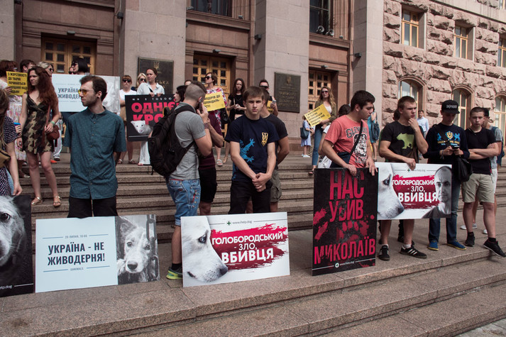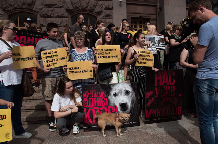 У п'ятницю, 20 липня, біля будівлі Київської міської ради пройшов масштабний мітинг зоозахисників. Активісти вимагали покарати владу Миколаєва за смерть понад сотні собак в одному з притулків.