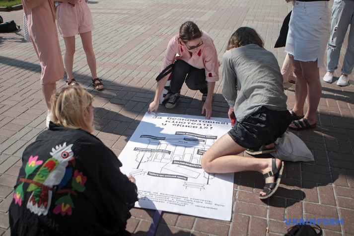 Активісти, які представляють ініціативу «Врятуємо КЦ «Кінотеатр «Київ», влаштували акцію під КМДА
