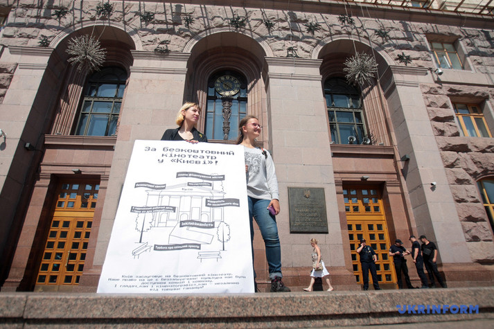 Під столичною мерією вимагають провести новий конкурс на оренду кінотеатру «Київ» (фото)