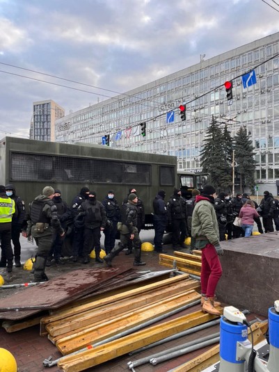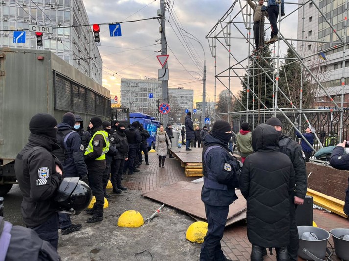 Біля Київського апеляційного суду, де сьогодні, 11 лютого має оскаржуватися запобіжний захід п’ятому президентові Петру Порошенку, сталися сутички.