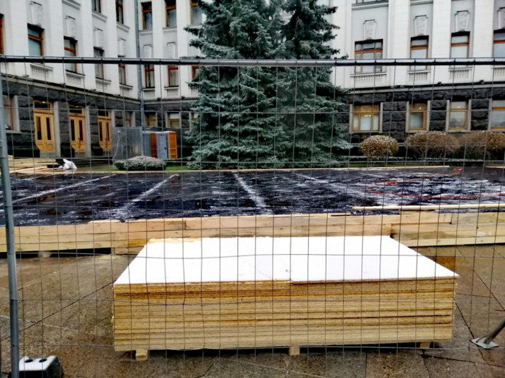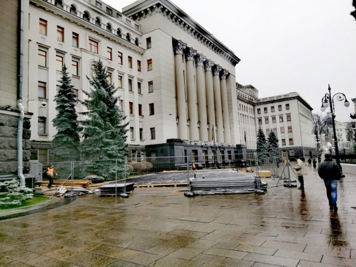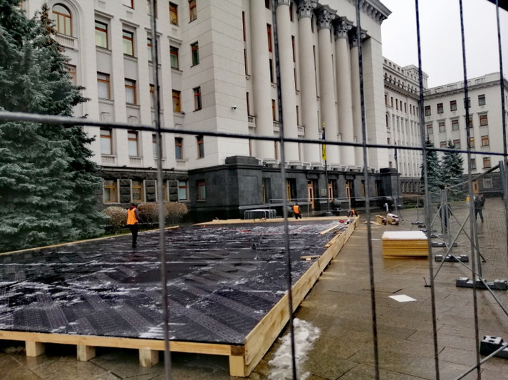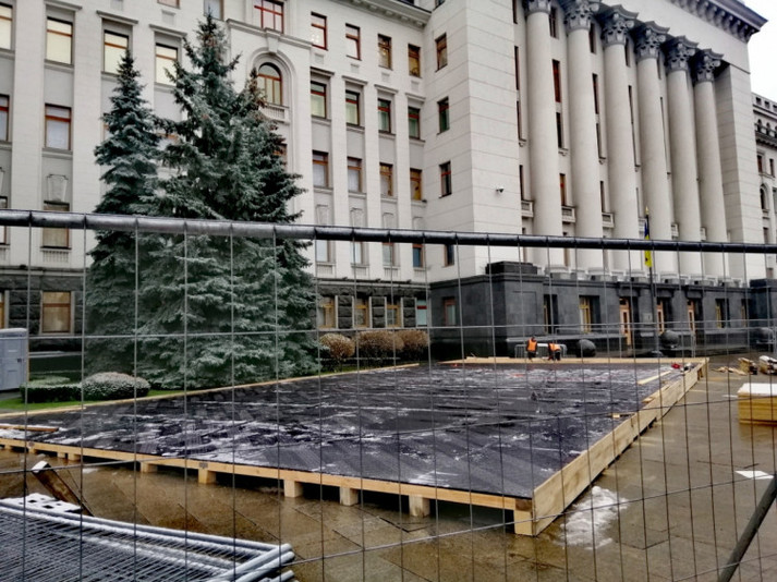 Під вікнами Зеленського на Банковій вже монтують ковзанку (фото)