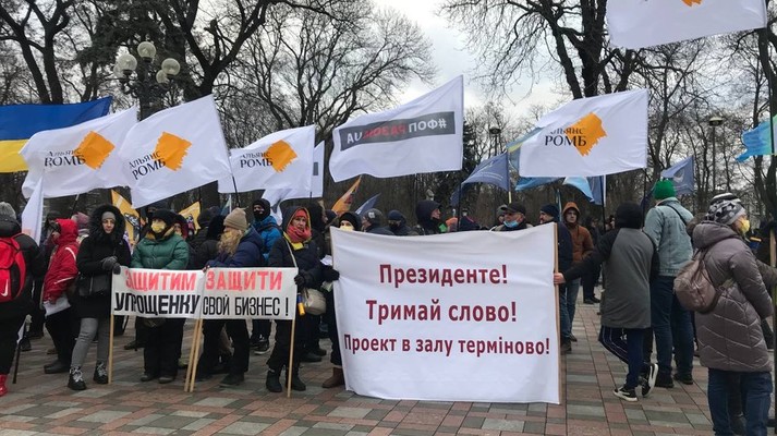 У вівторок, 30 листопада, біля Верховної Ради України підприємці проводять акцію протесту «Президент! Зупини гру!» з вимогою підтримати й ухвалити низку законопроєктів, а також скасувати обов’язкове введення касових апаратів для малого бізнесу. Про це повідомляє «Суспільне».