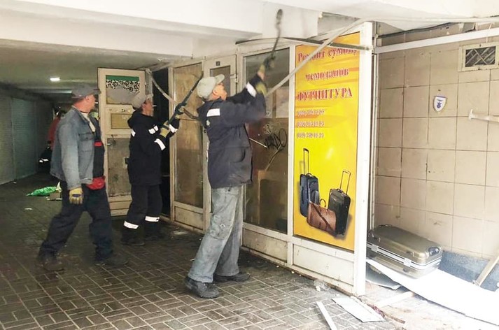 19 травня комунальне підприємство «Київблагоустрій» прибрало незаконні тимчасові споруди в одному з підземних переходів на Деміївській площі поблизу ринку.