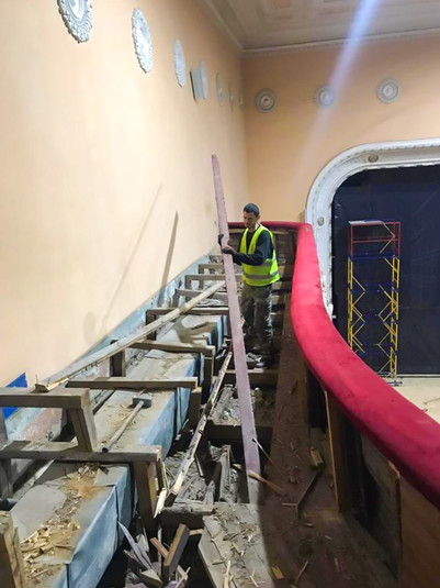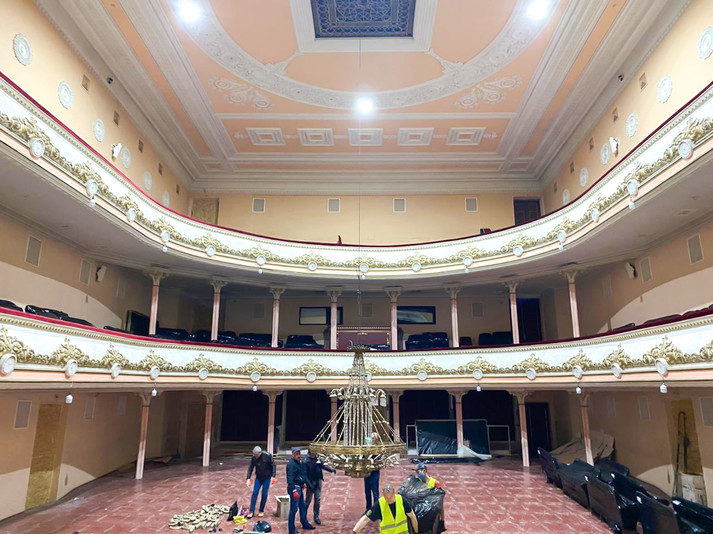 Наразі триває демонтаж і підготовка до реконструкції головного залу. Оновлення давно очікували і стіни, і комунікації, і портал сцени, а на стелі буде виконано художній розпис.