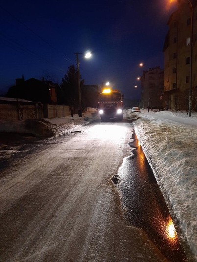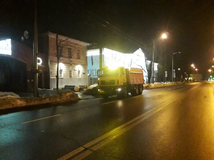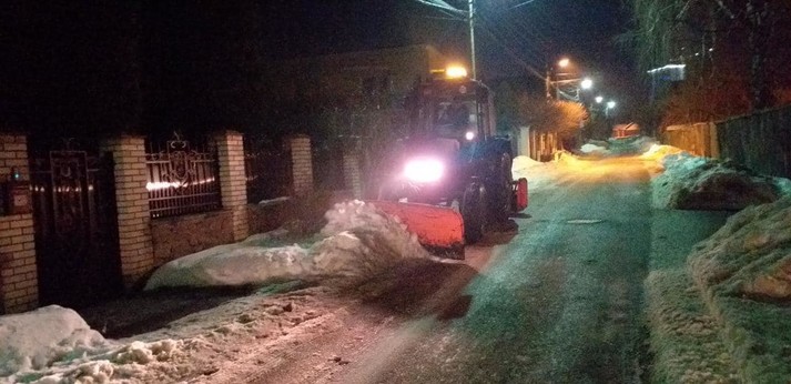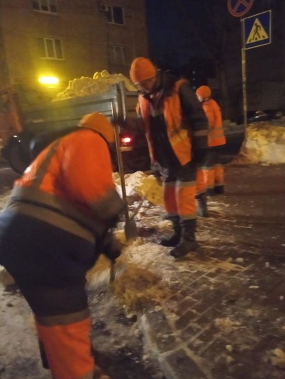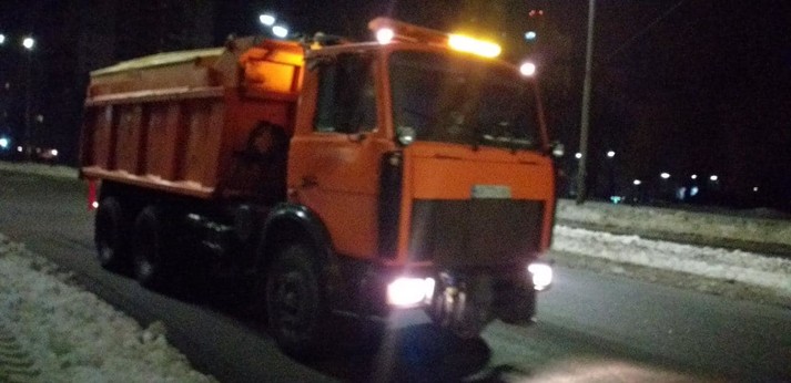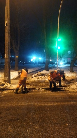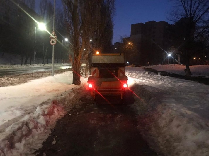 Вночі працювали 185 одиниць спецтехніки, які, окрім вивозу снігу, обробляли дороги й тротуари протиожеледними засобами.