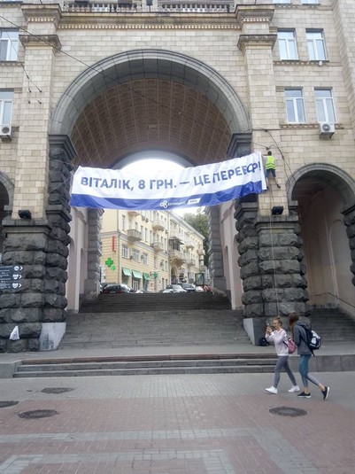 По Києву розвісили банери «Віталік, 8 грн – це перебор»