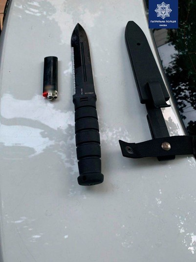 Відпрацьовуючи отриману інформацію, патрульні виявили громадянина, схожого за описом заявника. Чоловік, ледь помітивши службовий автомобіль, почав пришвидшуватися. Патрульні його наздогнали та зупинили. Під час поверхневої перевірки у сумці чоловіка інспектори виявили предмет, схожий на ніж.