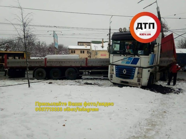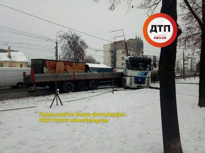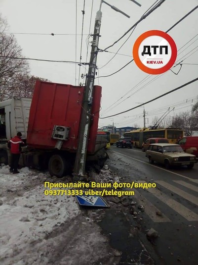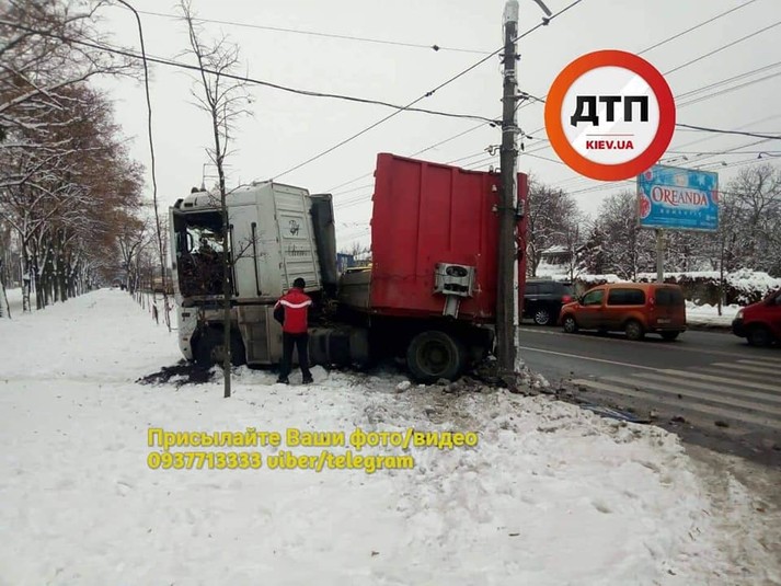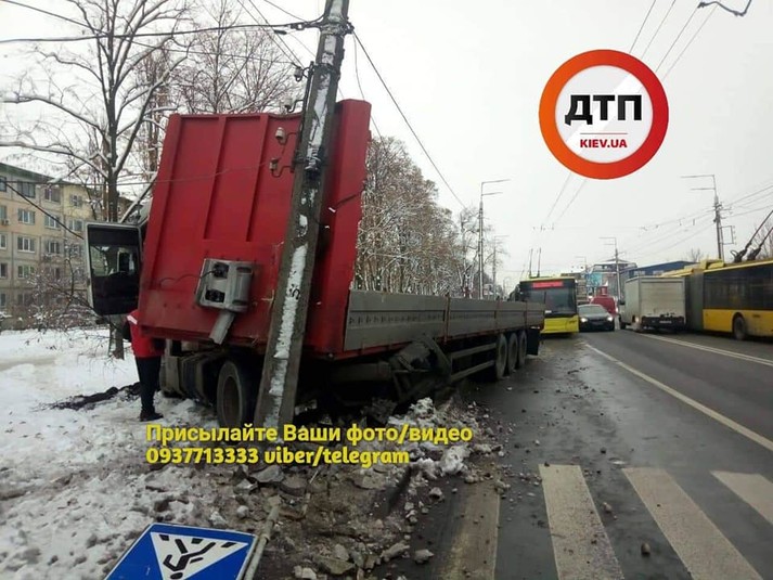 Поблизу метро «Нивки» фура влетіла у стовп (фото)