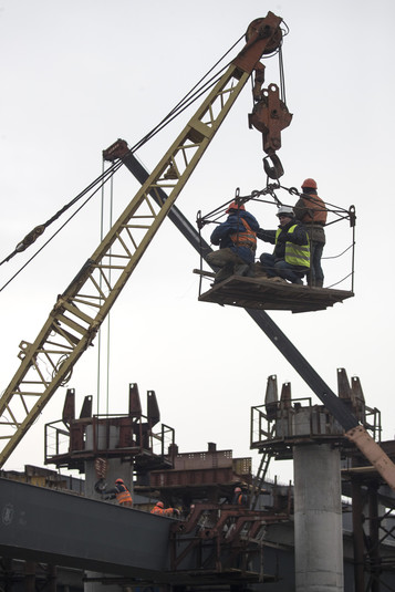 4 лютого будівельники встановили перші балки для майбутньої частини Подільсько-Воскресенського мостового переходу над Русанівським озером. Про це на своїй сторінці у Facebook повідомив мер столиці Віталій Кличко.